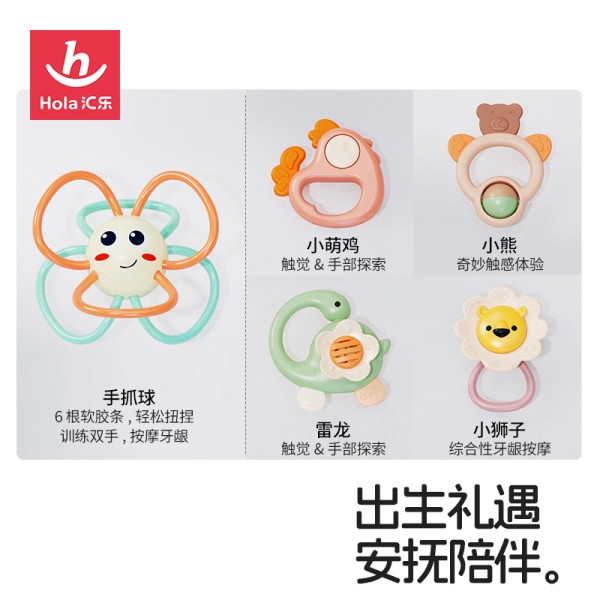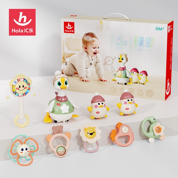新生臻爱礼盒,专为0M+宝宝设计,适用多种送礼场景,覆盖宝宝生长多阶段,如:口欲期、情感发育期、大动作发育期、认知启蒙期等。内含多款牙胶摇铃及汇乐拨浪鼓、摇摆鹅二代等多款产品,通过分阶安抚/精细动作训练/抬头学爬训练/早教启智,从初生到学爬,宠爱呵护宝宝的每一天。