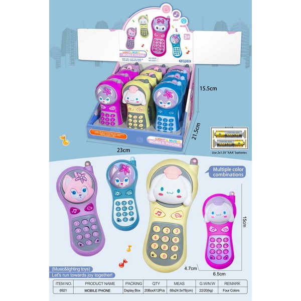 货号6921系列,英文新款益智声光手机 12PCS 2款4色,欢迎咨询订货