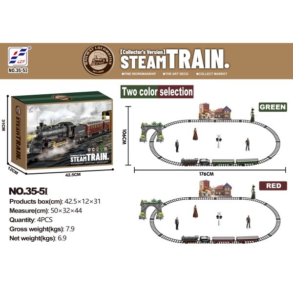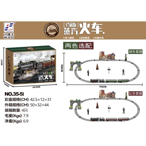 搭配四节车厢,后节客厢带可调节灯光效果,轨道配套灵活,可多样性拼接。