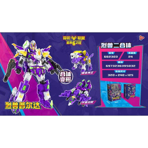 1.共有3个款式:烈兽普尔达(雷音狮王)烈兽普力士(苍炎斩龙)烈兽狮鹫王(电速轰龙),机甲与兽强强联手,性价比高,惊喜加倍
