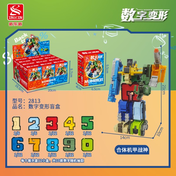 货号:2813,数字变形盲盒,每个展示盒12小盒,共10款数字随机抽取。