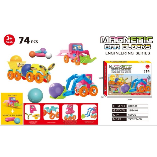 货号8182-35,英文新款益智磁力棒配工程车,欢迎咨询订货