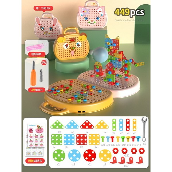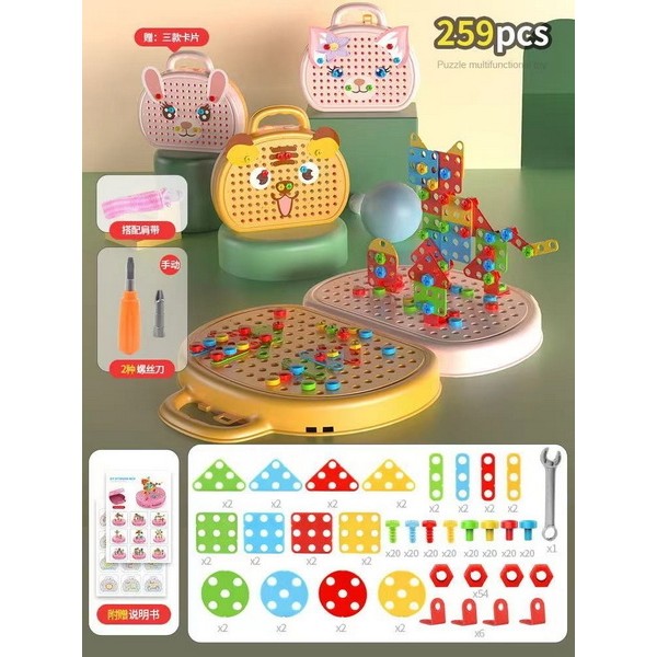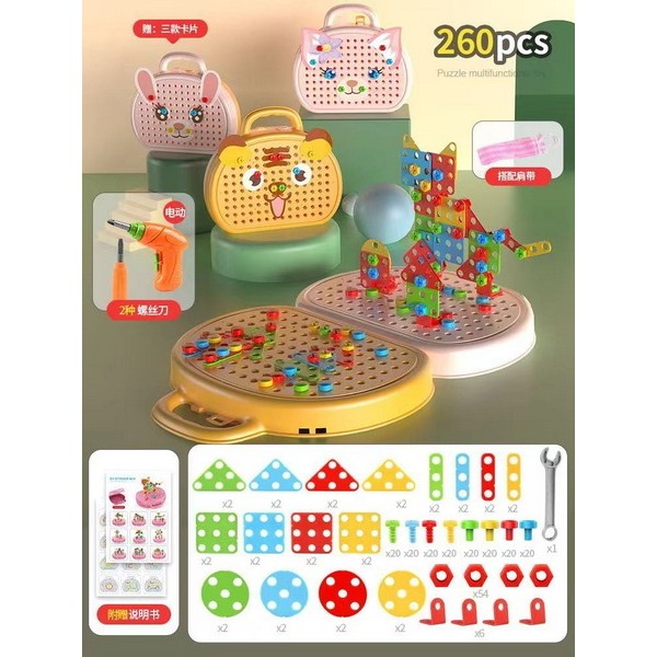 货号5851系列,英文新款259颗益智拼装积木手提箱,欢迎咨询订货