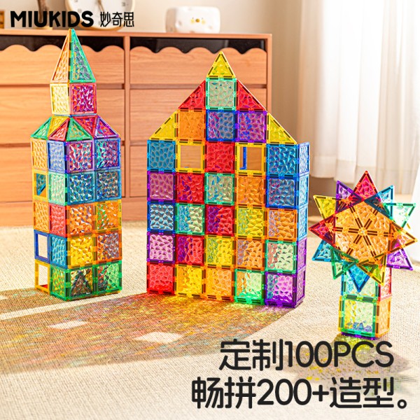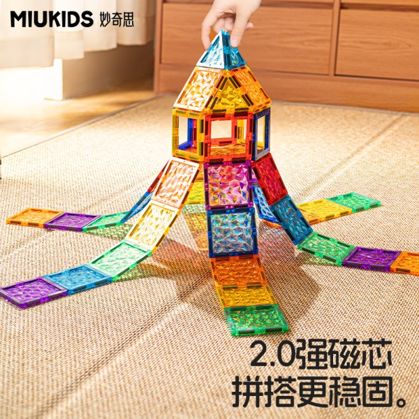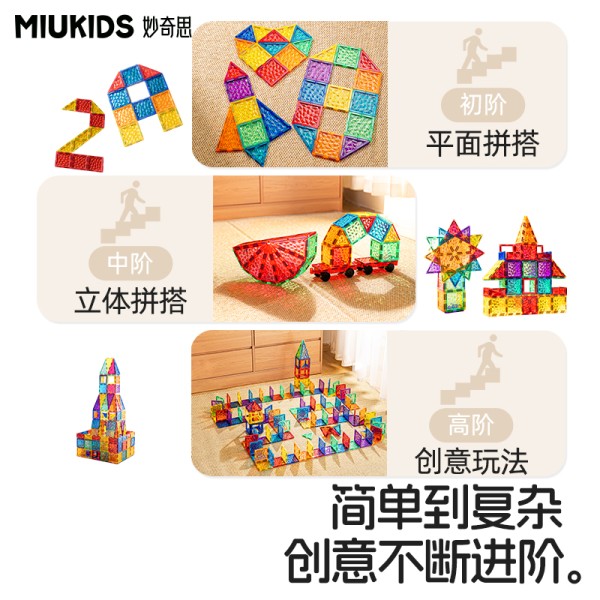 绚丽配色,帮助色彩启蒙。多维玩法,供宝宝平面、立体、游戏DIY拼搭,激发宝宝创造潜能。磁芯加厚,磁力更强;超声波无缝一体成型,更耐摔。内侧彩虹星冰纹设计,光影投射更梦幻。附赠手册,帮助宝宝轻松入门,启蒙空间思维、想象力及创造力。