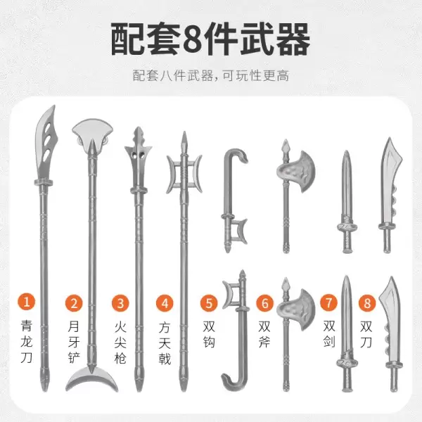 全原包AB环保用料,手动串节组装玩具,国内文化遗产玩具,主观可玩性强,更有多款兵器可选。