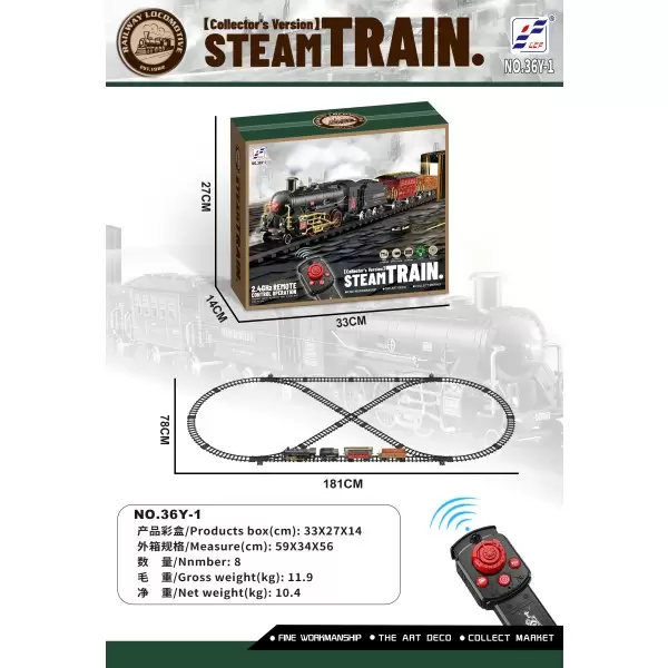 2.4G无级调速,遥控包括控制火车 前进,后退,加速,减速,鸣笛,静音,雾化,仿真音效各项功能。