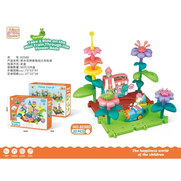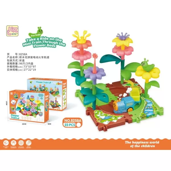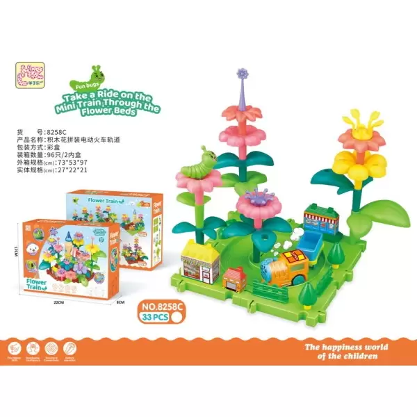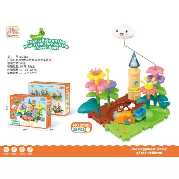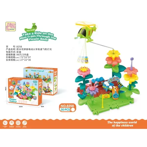 货号8258系列,益智DIY拼插积木花园拼装电动火车轨道飞机灯光闪烁30PCS,产品具备:EN71 CE COC 62115 60825 ASTM HR4040 CPSIA 7P PAHS BIS证书,欢迎咨询订货