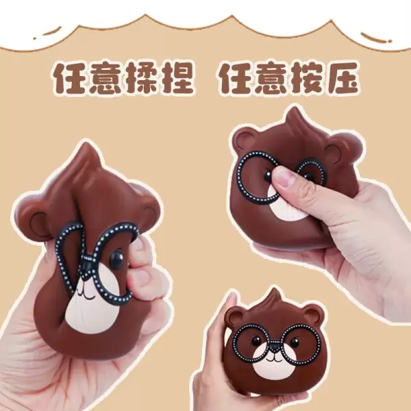 超好玩解压玩具眼镜熊慢回弹捏捏乐硅胶烂泥手感发泄神器