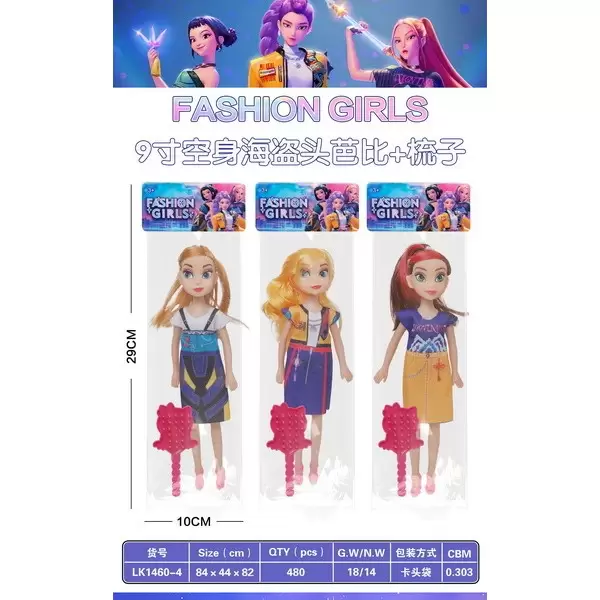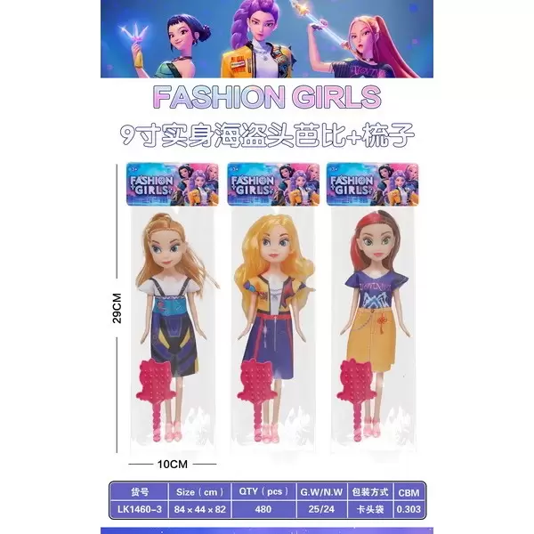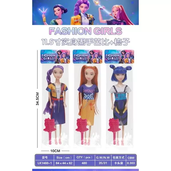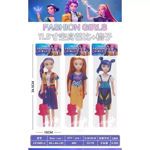 货号1460-1系列,11.5寸实身固手娃娃+梳子 (3款混装)娃娃,欢迎咨询订货