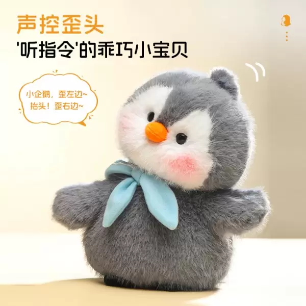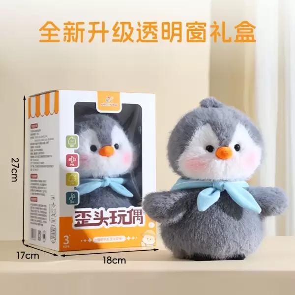 歪头玩偶系列之小企鹅 是趣巢玩具自主研发的全新趣味陪伴电动毛绒玩具将萌宠的可爱形象与歪头杀的动作效果相结合,打造出可爱的卖萌造型的产品通过电动装置模拟小动物歪头的动作,动作自然流畅,增加了玩具的趣味性和互动性,同时具备趣味学舌功能,拍手或发出声音可触发趣味音效。仿佛玩具也有了自己的情感和个性,能够与玩家进行情感交流。可以作为桌面陪伴玩偶,放在孩子的书桌、床头或成人的办公桌上,为人们带来陪伴和慰藉,缓解孤独感,在闲暇时光或工作学习之余,给人带来轻松和愉悦的心情。