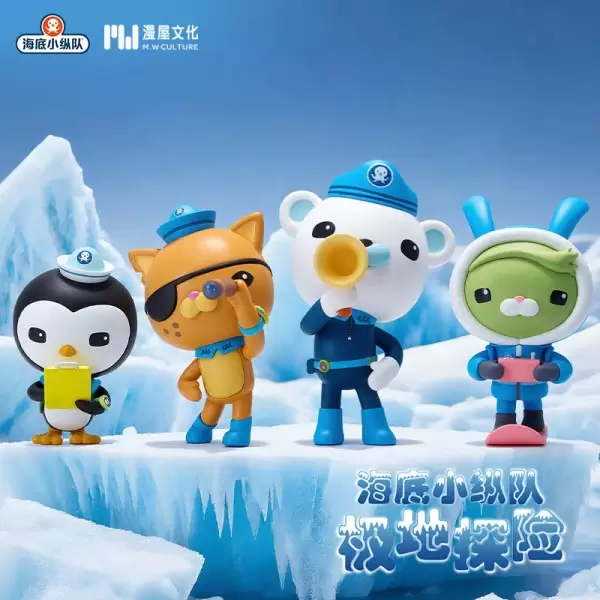 《海底小纵队》是由英国Silvergate 公司制作的动画系列,以北极熊巴克队长为核心,率领一支由企鹅医生皮索、海獭生物学家谢灵 通、腊肠犬摄像师达西西、兔子工程师突突兔、橘猫探险家呱唧等 成员组成的海底探险救援队。这款《海底小纵队》极地探险盲盒是由漫屋文化联名海底小纵队开发,该系列一共为6+1个款式(6个常规款,1个隐藏款),分别为:海豹(隐藏款)巴克队长,突突兔,呱唧,谢灵通,达西西,皮索。