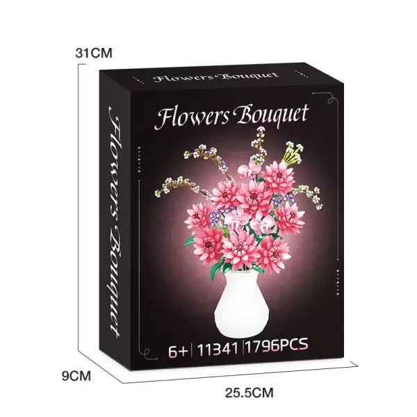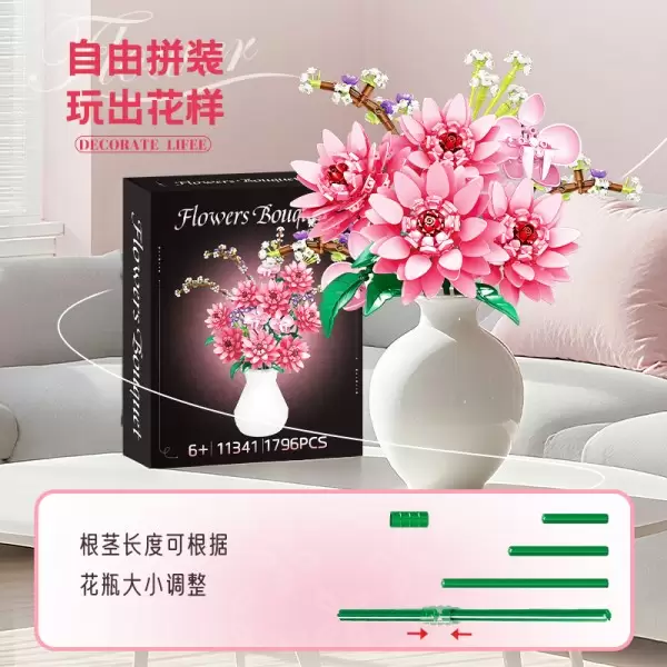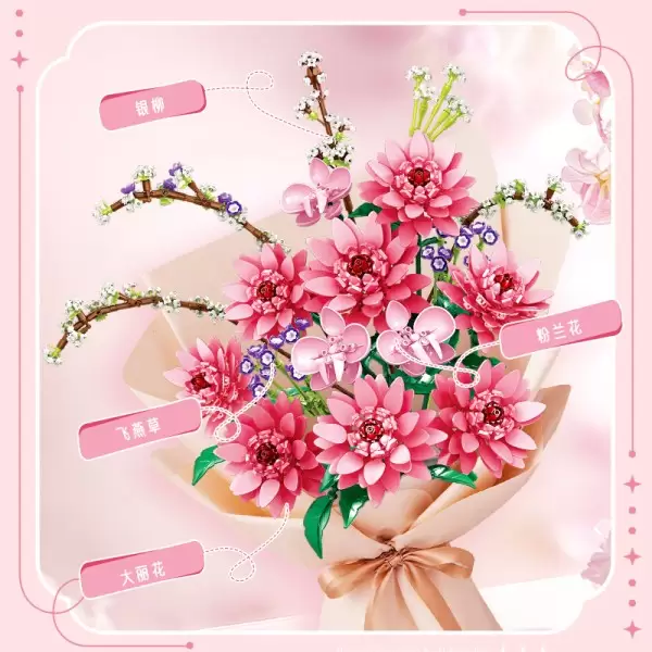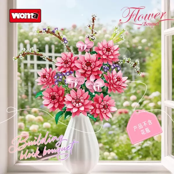 沃马积木11341永生花束情人节周年纪念送女生拼装插花玩具