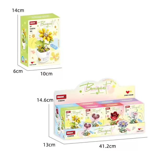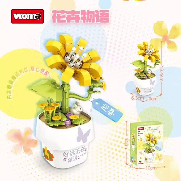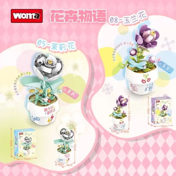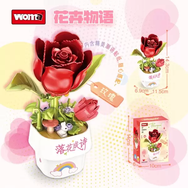 沃马积木C2014花盆栽桌面玫瑰永生花摆件玩具周年纪念礼物