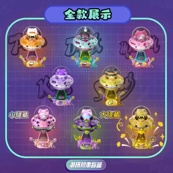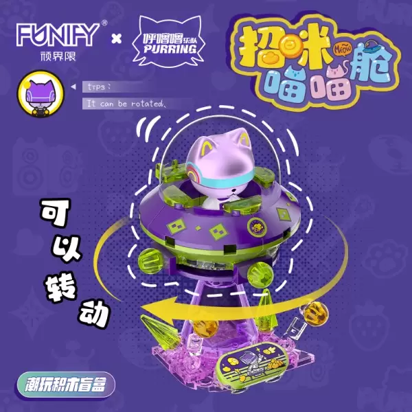 顽界限W8109呼噜噜联名积木太空飞碟桌面车载摆件儿童玩具