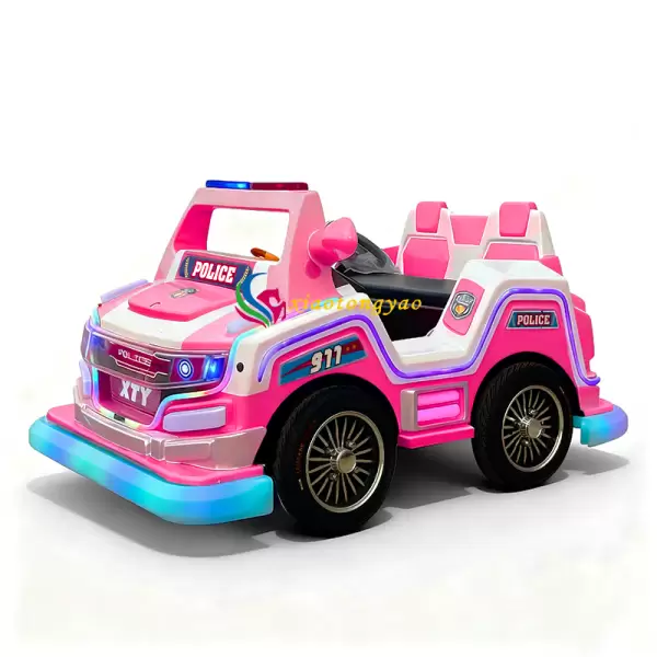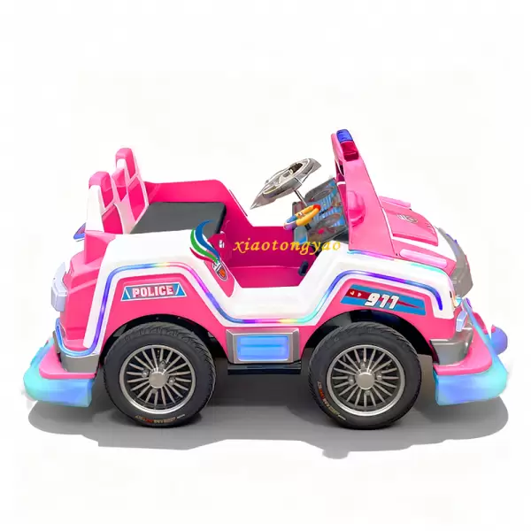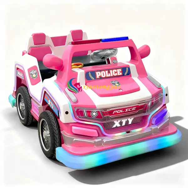 这款儿童电动警车游乐车以充满童趣的设计风格为主,整体采用亮眼的粉色作为主色调,搭配紫色、蓝色、白色等色彩,视觉上极具吸引力。车身上醒目的“POLICE”标识,以及数字“911”,营造出浓厚的警车氛围感,满足孩子对警察角色的憧憬与向往。车头处的“XTY”字样,彰显独特身份。车顶标配的警灯,在行驶过程中闪烁,增加了趣味性和真实感。