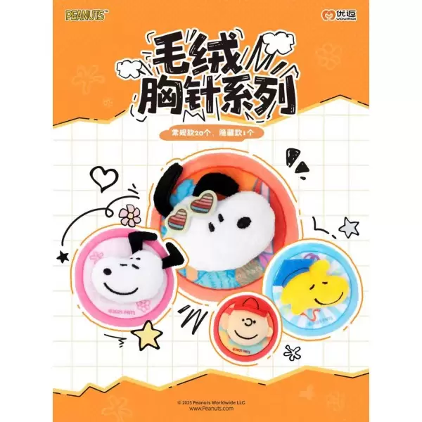 史努比毛绒胸针盲袋来啦!软乎乎的毛绒圆牌 + 萌趣造型,把各种可爱场景都 “别” 在身上:西部牛仔款带着复古帽檐,清爽气泡款裹着通透质感,还有飞行幻想、蜜桃甜心等二十多款主题,每款都藏着史努比的治愈笑脸。