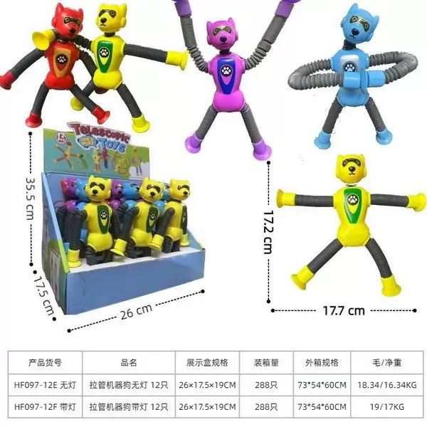 货号097-12F系列,英文新款益智(带灯)拉管机器狗带灯光12只/盒,欢迎咨询订货