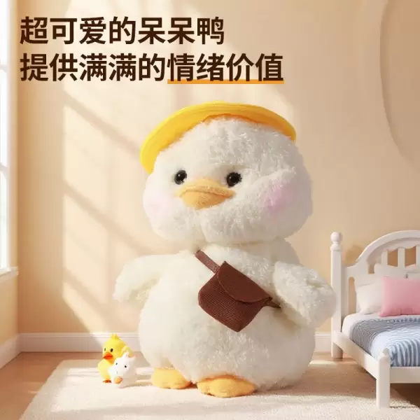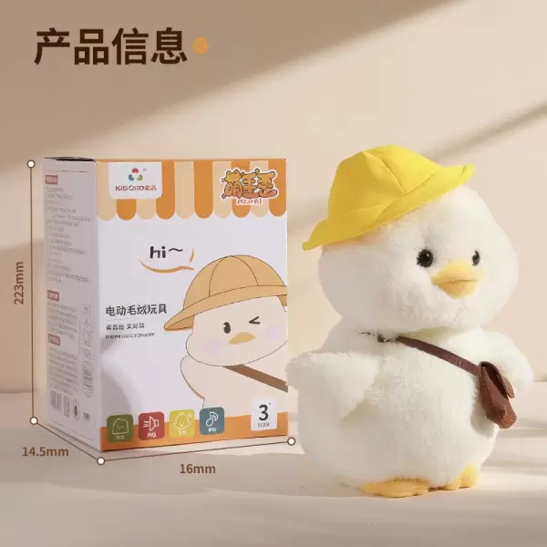 歪头玩偶系列之呆呆鸭 是趣巢玩具自主研发的全新趣味陪伴电动毛绒玩具将萌宠的可爱形象与歪头杀的动作效果相结合,打造出可爱的卖萌造型的产品通过电动装置模拟小动物歪头的动作,动作自然流畅,增加了玩具的趣味性和互动性,同时具备趣味学舌功能,拍手或发出声音可触发趣味音效。仿佛玩具也有了自己的情感和个性,能够与玩家进行情感交流。可以作为桌面陪伴玩偶,放在孩子的书桌、床头或成人的办公桌上,为人们带来陪伴和慰藉,缓解孤独感,在闲暇时光或工作学习之余,给人带来轻松和愉悦的心情。