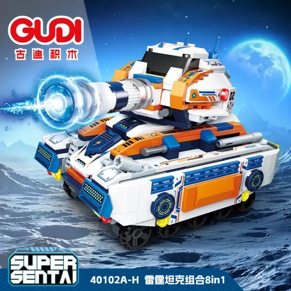 一、该端盒共有八款产品,集齐八款产品,可通过拆变的方式组合成一辆大载具__雷霆坦克
