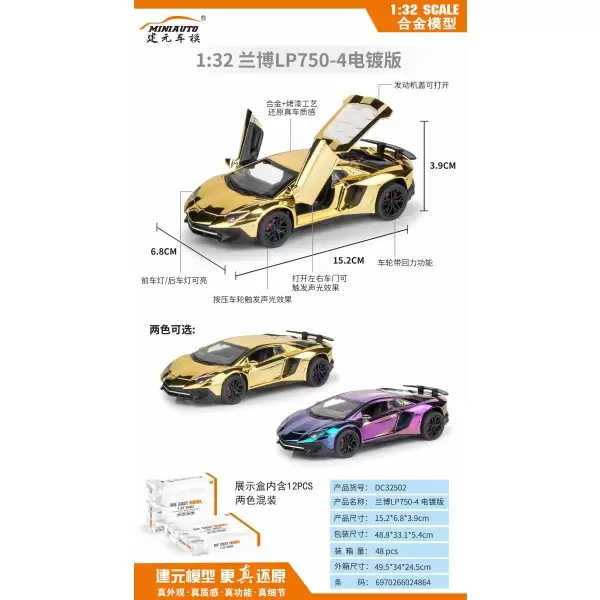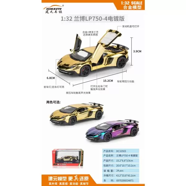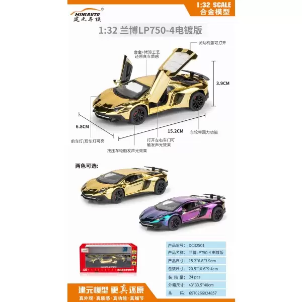 功能介绍:前后车灯可亮,仿真音效,回力,车门与后盖可开启