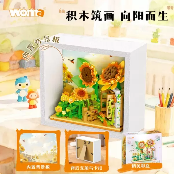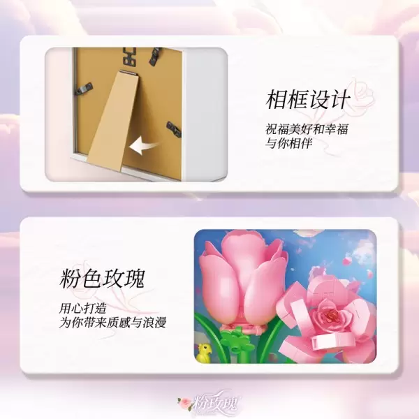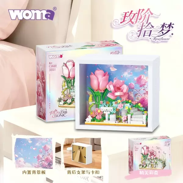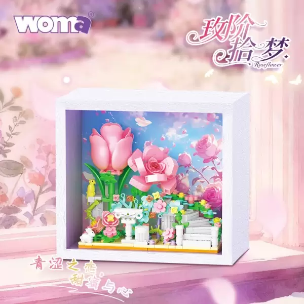 沃马积木C2019/20花玫瑰向日葵永生花拼装相框摆件情人节
