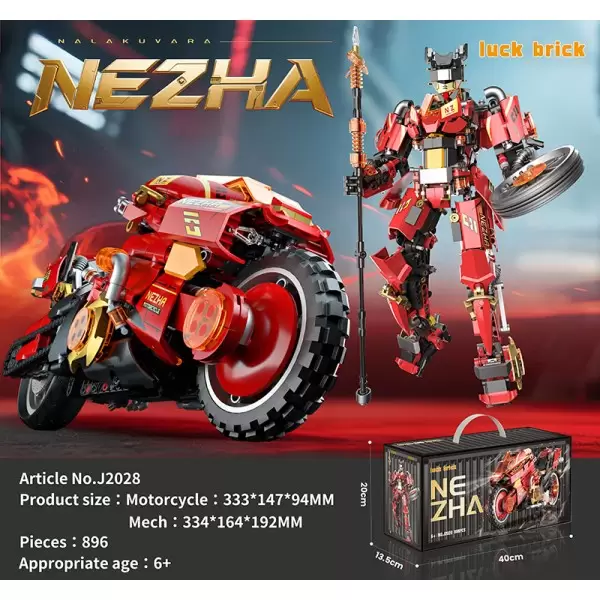 1:8哪吒2变摩托车[英文货柜盒]拼装积木J2028