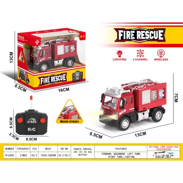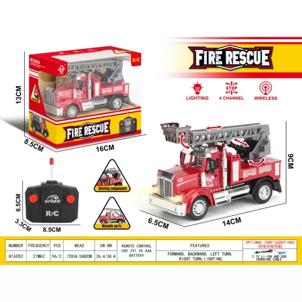 电池:车身和遥控器使用2粒x1.5VAA 电池,(不包含)