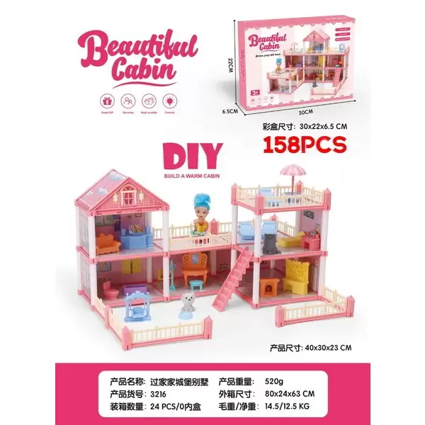 货号3212系列,英文新款过家家DIY城堡别墅系列/粉色,欢迎咨询订货
